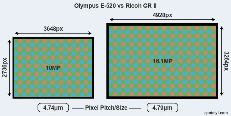 | Sensor Specs | Olympus E-520 | Ricoh GR II |