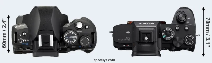 | 13. | Sony A7 III | 127 mm | 96 mm | 74 mm | 650 g | 610 | Y | Feb 2018 | US$ 1 999 | amazon.com | |