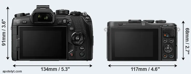 The above size and weight comparisons are to some extent incomplete since they do not consider the interchangeable lenses that both of these cameras require. In this particular case, both cameras feature the same lens mount, so that they can use the same lenses. You can compare the optics available in the Micro Four Thirds Lens Catalog. Mirrorless cameras, such as the two under consideration, have the additional advantage of having a short flange to focal plane distance, which makes it possible to mount many lenses from other systems onto the camera via adapters.