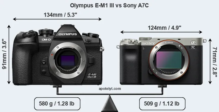 Size Olympus E-M1 III vs Sony A7C