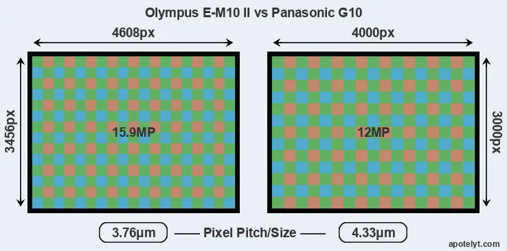 | Sensor Specs | Olympus E-M10 II | Panasonic G10 |