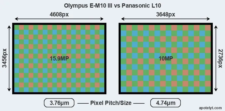 | Sensor Specs | Olympus E-M10 III | Panasonic L10 |