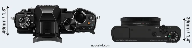 If the front view area (width x height) of the cameras is taken as an aggregate measure of their size, the Sony RX100 is considerably smaller (39 percent) than the Olympus E-M10. In this context, it is worth noting that neither the E-M10 nor the RX100 are weather-sealed.