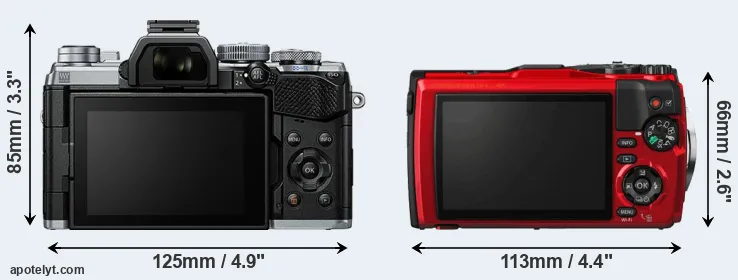 The above size and weight comparisons are to some extent incomplete and possibly misleading, as the TG-5 has a lens built in, whereas the E-M5 III is an interchangeable lens camera that requires a separate lens. Attaching the latter will add extra weight and bulk to the setup. You can compare the optics available for the E-M5 III and their specifications in the Micro Four Thirds Lens Catalog.