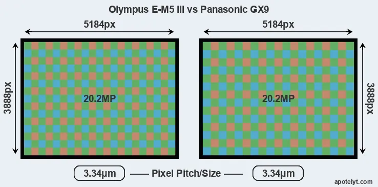 | Sensor Specs | Olympus E-M5 III | Panasonic GX9 |