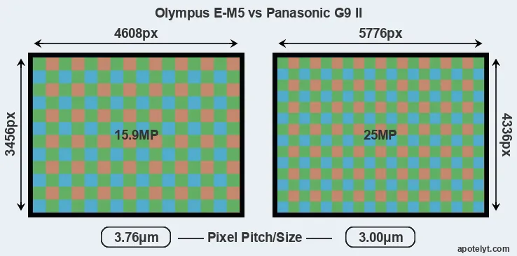 | Sensor Specs | Olympus E-M5 | Panasonic G9 II |