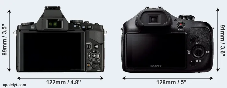 The side-by-side display below illustrates the physical size and weight of the Olympus E-M5 and the Sony A3000. The two cameras are presented according to their relative size. Three consecutive perspectives from the front, the top, and the back are available. All width, height and depth measures are rounded to the nearest millimeter.