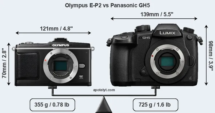 | Body Specs | Olympus E-P2 | Panasonic GH5 |