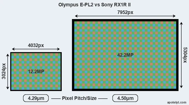 | Sensor Specs | Olympus E-PL2 | Sony RX1R II |