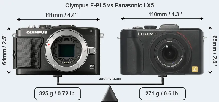 | Body Specs | Olympus E-PL5 | Panasonic LX5 |