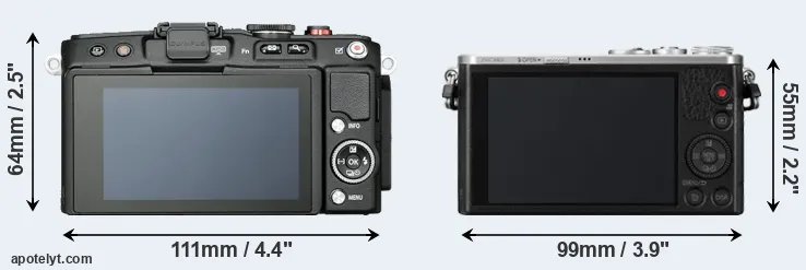 The above size and weight comparisons are to some extent incomplete since they do not consider the interchangeable lenses that both of these cameras require. In this particular case, both cameras feature the same lens mount, so that they can use the same lenses. You can compare the optics available in the Micro Four Thirds Lens Catalog. Mirrorless cameras, such as the two under consideration, have the additional advantage of having a short flange to focal plane distance, which makes it possible to mount many lenses from other systems onto the camera via adapters.