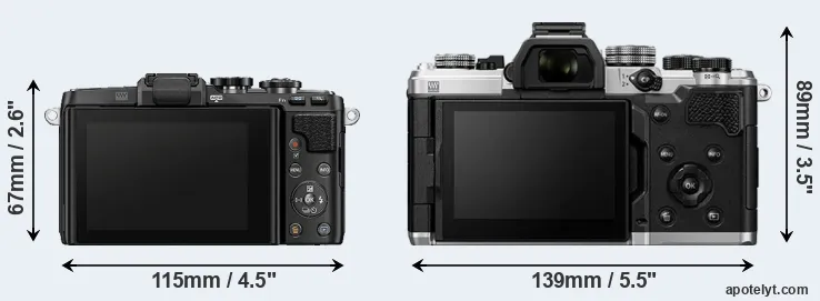 The above size and weight comparisons are to some extent incomplete since they do not consider the interchangeable lenses that both of these cameras require. In this particular case, both cameras feature the same lens mount, so that they can use the same lenses. You can compare the optics available in the Micro Four Thirds Lens Catalog. Mirrorless cameras, such as the two under consideration, have the additional advantage of having a short flange to focal plane distance, which makes it possible to mount many lenses from other systems onto the camera via adapters.