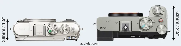 If the front view area (width x height) of the cameras is taken as an aggregate measure of their size, the Sony A7C R is notably larger (11 percent) than the Olympus E-PL9. Moreover, the A7C R is substantially heavier (37 percent) than the E-PL9. It is noteworthy in this context that the A7C R is splash and dust-proof, while the E-PL9 does not feature any corresponding weather-sealing.