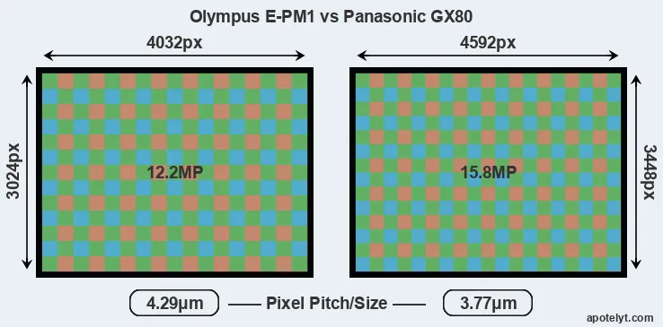 Olympus E-PM1 and Panasonic GX80 sensor measures