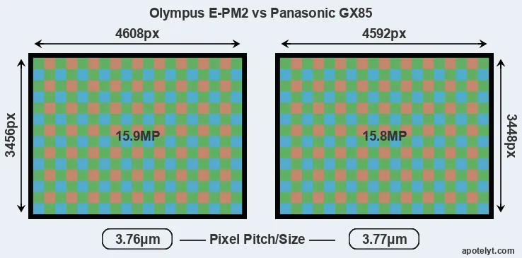 | Sensor Specs | Olympus E-PM2 | Panasonic GX85 |