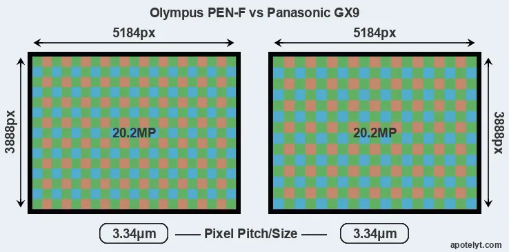 | Sensor Specs | Olympus PEN-F | Panasonic GX9 |