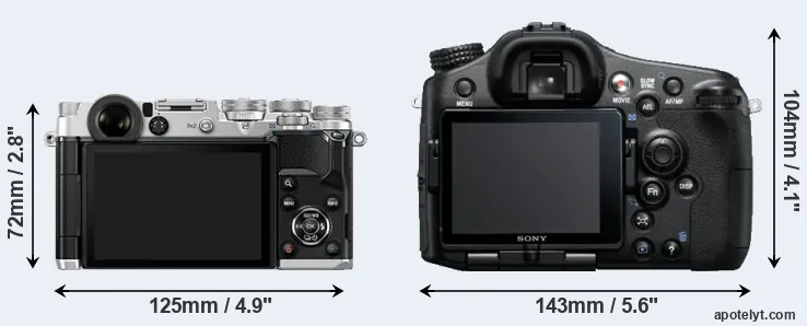 If the front view area (width x height) of the cameras is taken as an aggregate measure of their size, the Sony A77 is considerably larger (65 percent) than the Olympus PEN-F. Moreover, the A77 is substantially heavier (71 percent) than the PEN-F. It is noteworthy in this context that the A77 is splash and dust-proof, while the PEN-F does not feature any corresponding weather-sealing.
