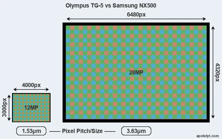| Sensor Specs | Olympus TG-5 | Samsung NX500 |