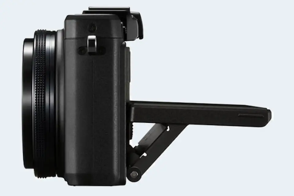 The LCD screen on the Olympus XZ-2 is flexibly attached to the body. In particular, the LCD can be tilted vertically to facilitate odd-angle shots in landscape orientation. This tilting design is often preferred, for example, by street photographers to a fully articulated, swivel type of LCD attachment, as it is more unobtrusive during shooting than a screen that flips out to the side.