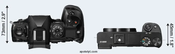 Compare OM-1 versus A6000 top