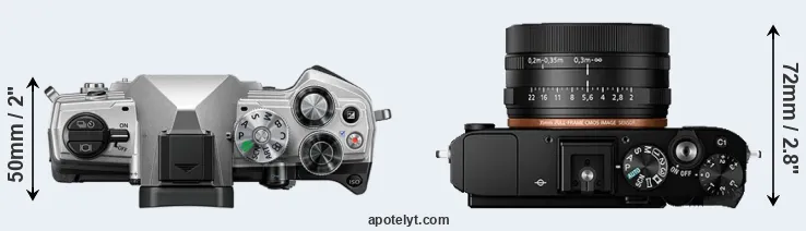 The above size and weight comparisons are to some extent incomplete and possibly misleading, as the RX1R II has a lens built in, whereas the OM-5 is an interchangeable lens camera that requires a separate lens. Attaching the latter will add extra weight and bulk to the setup. You can compare the optics available for the OM-5 and their specifications in the Micro Four Thirds Lens Catalog.