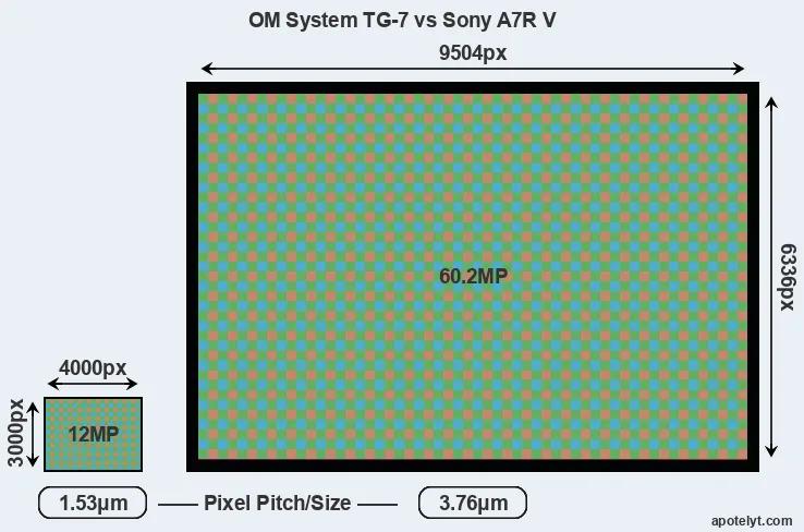 | Sensor Specs | OM System TG-7 | Sony A7R V |