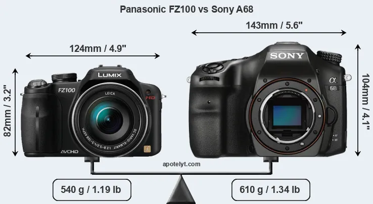| Body Specs | Panasonic FZ100 | Sony A68 |
