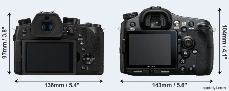 | Body Specs | Panasonic FZ1000 II | Sony A77 |