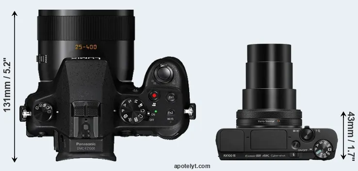 | 7. | Panasonic FZ1000 II | 136 mm | 97 mm | 131 mm | 810 g | 350 | n | Feb 2019 | US$ 899 | amazon.com | |