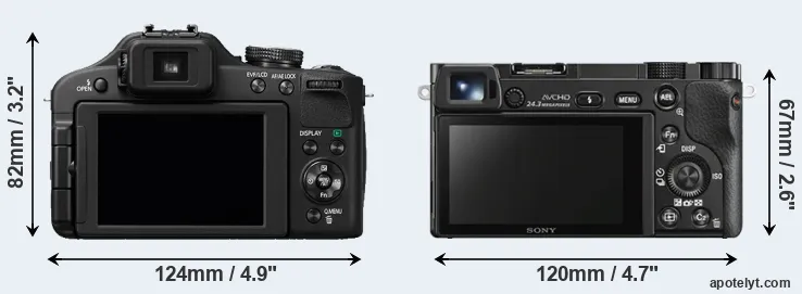 | Body Specs | Panasonic FZ150 | Sony A6000 |
