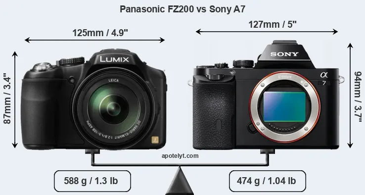 | Body Specs | Panasonic FZ200 | Sony A7 |