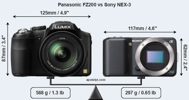 | Body Specs | Panasonic FZ200 | Sony NEX-3 |