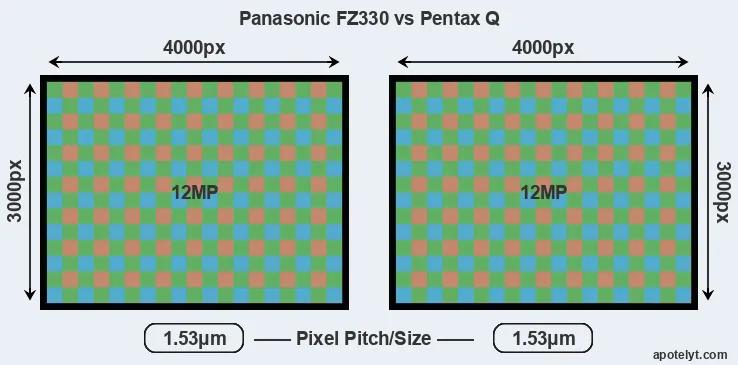 | Sensor Specs | Panasonic FZ330 | Pentax Q |