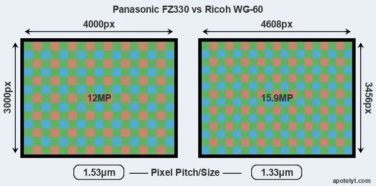 | Sensor Specs | Panasonic FZ330 | Ricoh WG-60 |