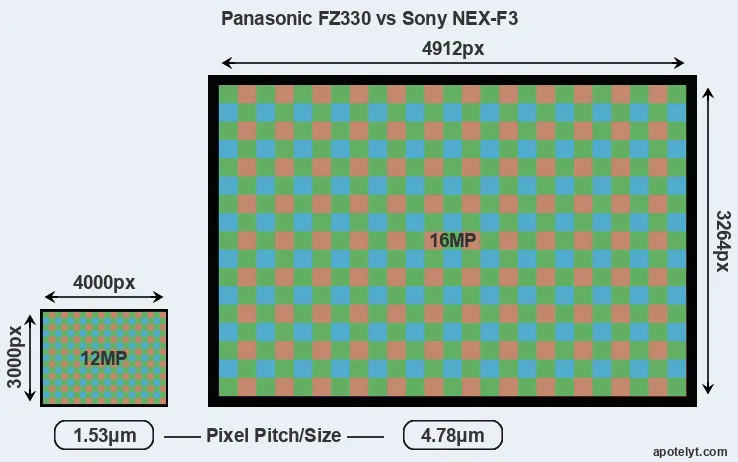 | Sensor Specs | Panasonic FZ330 | Sony NEX-F3 |