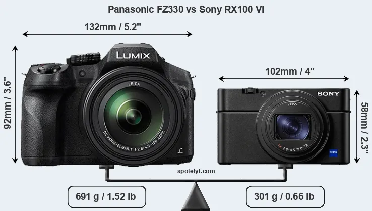 | Body Specs | Panasonic FZ330 | Sony RX100 VI |