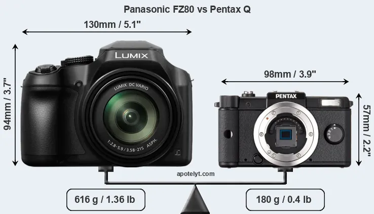 The above size and weight comparisons are to some extent incomplete and possibly misleading, as the FZ80 has a lens built in, whereas the Pentax Q is an interchangeable lens camera that requires a separate lens. Attaching the latter will add extra weight and bulk to the setup.