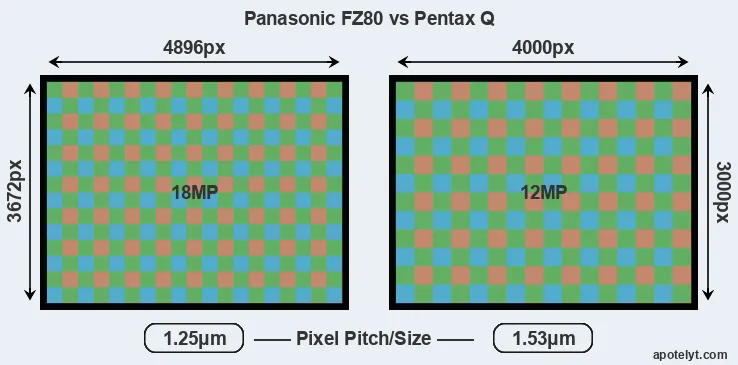 | Sensor Specs | Panasonic FZ80 | Pentax Q |