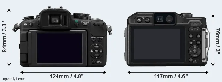The above size and weight comparisons are to some extent incomplete and possibly misleading, as the TS7 has a lens built in, whereas the G2 is an interchangeable lens camera that requires a separate lens. Attaching the latter will add extra weight and bulk to the setup. You can compare the optics available for the G2 and their specifications in the Micro Four Thirds Lens Catalog.