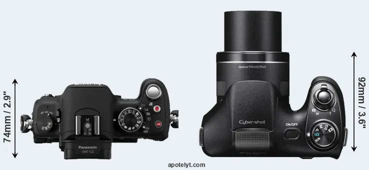 Going beyond this snapshot of core features and characteristics, what are the differences between the Panasonic Lumix DMC-G2 and the Sony Cyber-shot DSC-H300? Which one should you buy? Read on to find out how these two cameras compare with respect to their body size, their imaging sensors, their shooting features, their input-output connections, and their reception by expert reviewers.