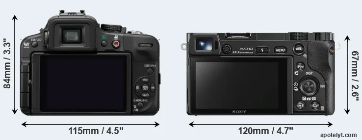 | Body Specs | Panasonic G3 | Sony A6000 |