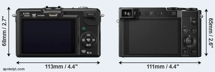 The above size and weight comparisons are to some extent incomplete and possibly misleading, as the ZS100 has a lens built in, whereas the GF2 is an interchangeable lens camera that requires a separate lens. Attaching the latter will add extra weight and bulk to the setup. You can compare the optics available for the GF2 and their specifications in the Micro Four Thirds Lens Catalog.