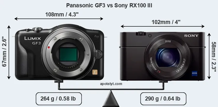 | Body Specs | Panasonic GF3 | Sony RX100 III |