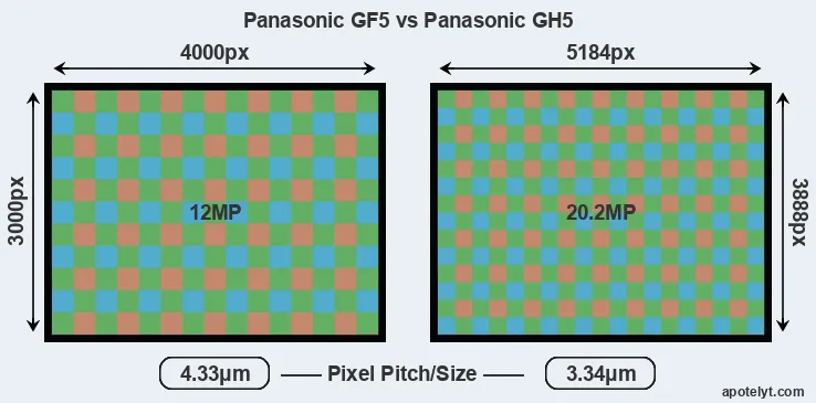 | Sensor Specs | Panasonic GF5 | Panasonic GH5 |