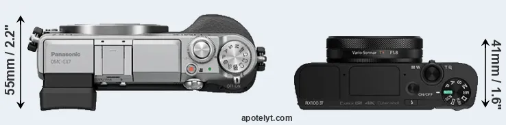 The above size and weight comparisons are to some extent incomplete and possibly misleading, as the RX100 IV has a lens built in, whereas the GX7 is an interchangeable lens camera that requires a separate lens. Attaching the latter will add extra weight and bulk to the setup. You can compare the optics available for the GX7 and their specifications in the Micro Four Thirds Lens Catalog.
