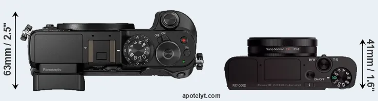 The above size and weight comparisons are to some extent incomplete and possibly misleading, as the RX100 III has a lens built in, whereas the GX8 is an interchangeable lens camera that requires a separate lens. Attaching the latter will add extra weight and bulk to the setup. You can compare the optics available for the GX8 and their specifications in the Micro Four Thirds Lens Catalog.