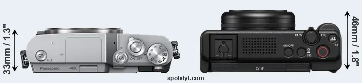 The Panasonic Lumix DMC-GX800 (called Panasonic GX850 in some regions) and the Sony ZV-1F are two digital cameras that were revealed to the public, respectively, in January 2017 and October 2022. The GX800 is a mirrorless interchangeable lens camera, while the ZV-1F is a fixed lens compact. The cameras are based on a Four Thirds (GX800) and an one-inch (ZV-1F) sensor. The Panasonic has a resolution of 15.8 megapixels, whereas the Sony provides 20 MP.