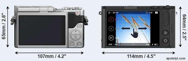 | 14. | Panasonic GF7 | 107 mm | 65 mm | 33 mm | 266 g | 230 | n | Jan 2015 | US$ 499 | ebay.com | |