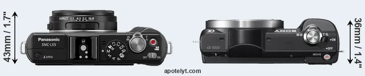 The above size and weight comparisons are to some extent incomplete and possibly misleading, as the LX5 has a lens built in, whereas the A5000 is an interchangeable lens camera that requires a separate lens. Attaching the latter will add extra weight and bulk to the setup. You can compare the optics available for the A5000 and their specifications in the Sony E-Mount Lens Catalog.
