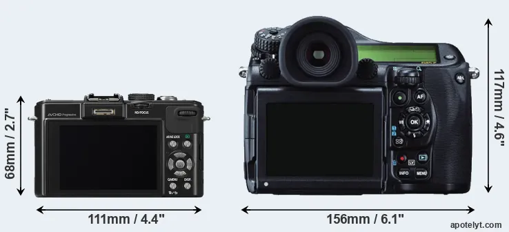 If the front view area (width x height) of the cameras is taken as an aggregate measure of their size, the Pentax 645Z is considerably larger (142 percent) than the Panasonic LX7. It is noteworthy in this context that the 645Z is splash and dust-proof, while the LX7 does not feature any corresponding weather-sealing.